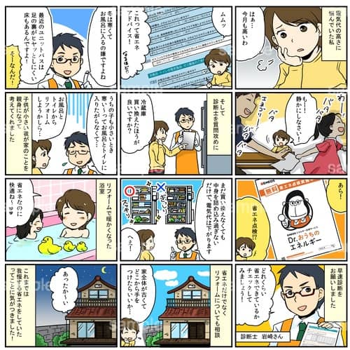 おうちエネルギー診断のユーザー事例をまんがにさせていただきました。※公開は終了しています。